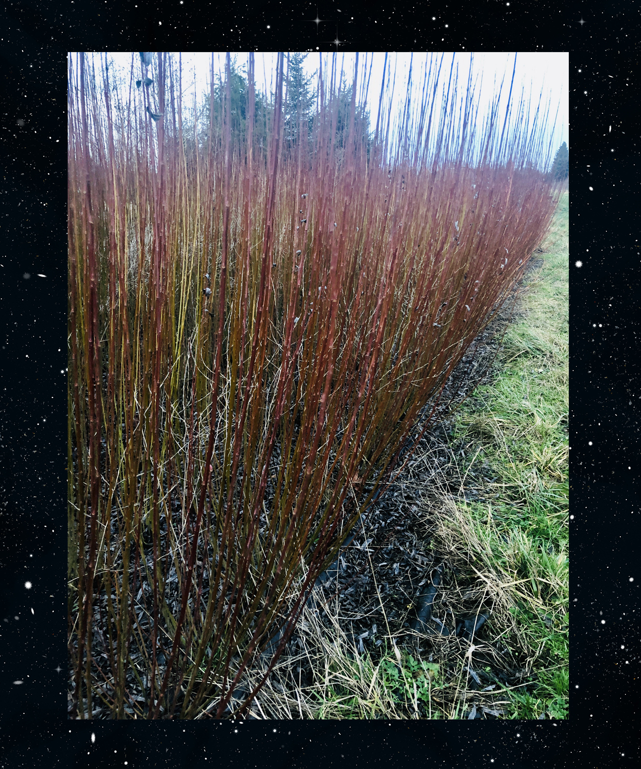 A willow that fades green-brown at the earth to a deeper red-brown at the tip. Americana's bark has a soft/matte feel and look when fresh and dries to a dark dark red-brown. Sweet little buds that have a fleck of fire in them. Learning to love this willow. Grows in the 4-8' range. Give these willow a good long soak for weaving - they seem to need that.