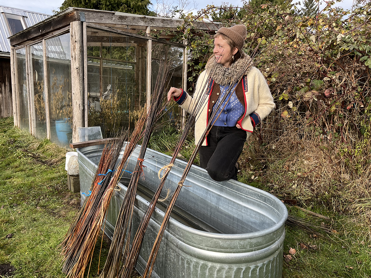 Her willow basketry practice began the summer of 2012 when she met her teacher Margaret Mathewson and learned to weave her first willow basket.